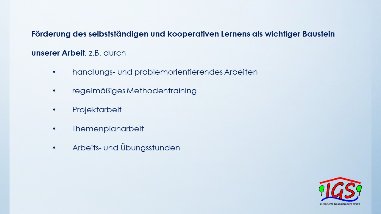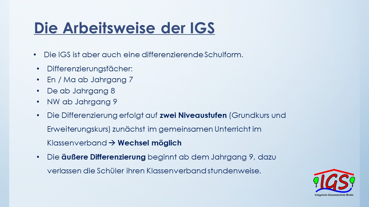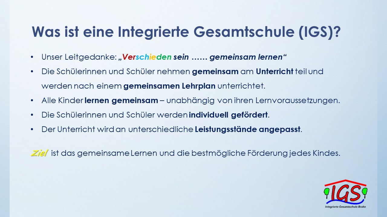 An dieser Stelle haben Sie die Gelegenheit, sich (noch einmal) über das Konzept unserer IGS zu informieren.
